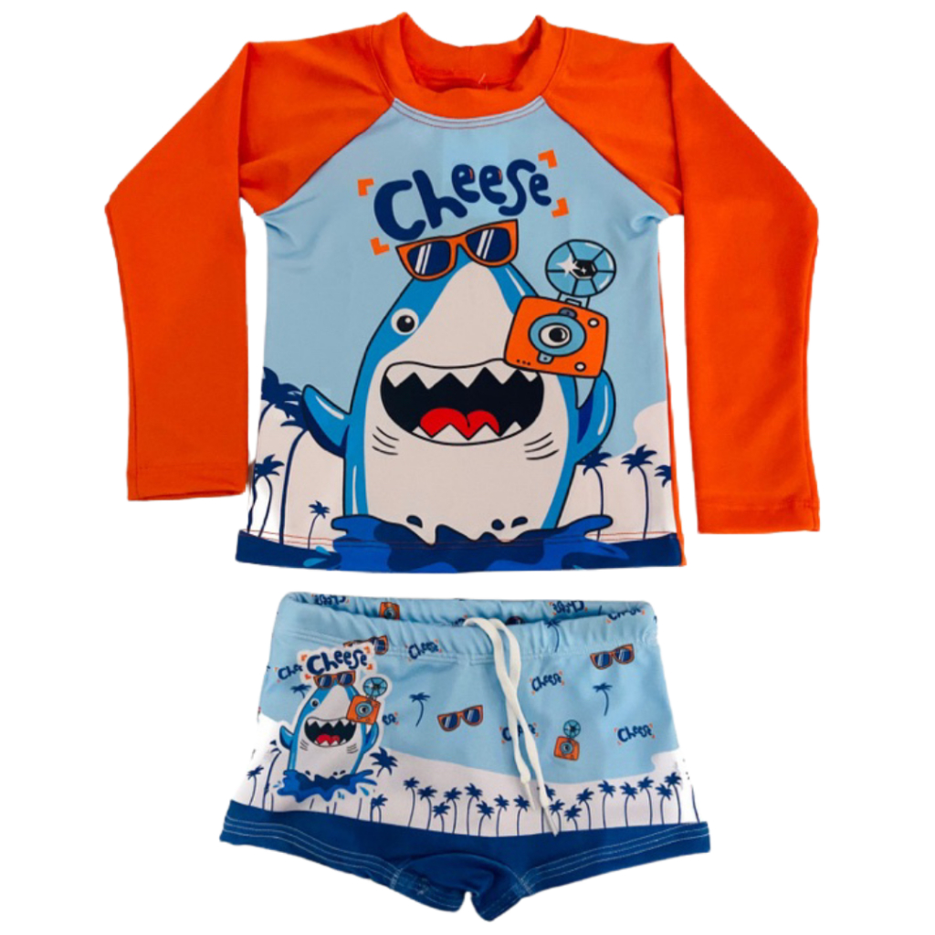 Conjunto UV Infantil Menino Camisa + Sunga Proteção Solar Roupa de Praia