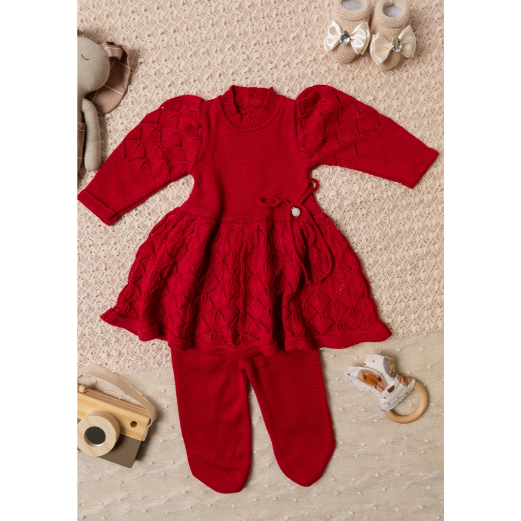 Conjunto Vestido Calça Pingente Perola Récem Nascido Tricô infantil Bebê Menina RN tem frete grátis?