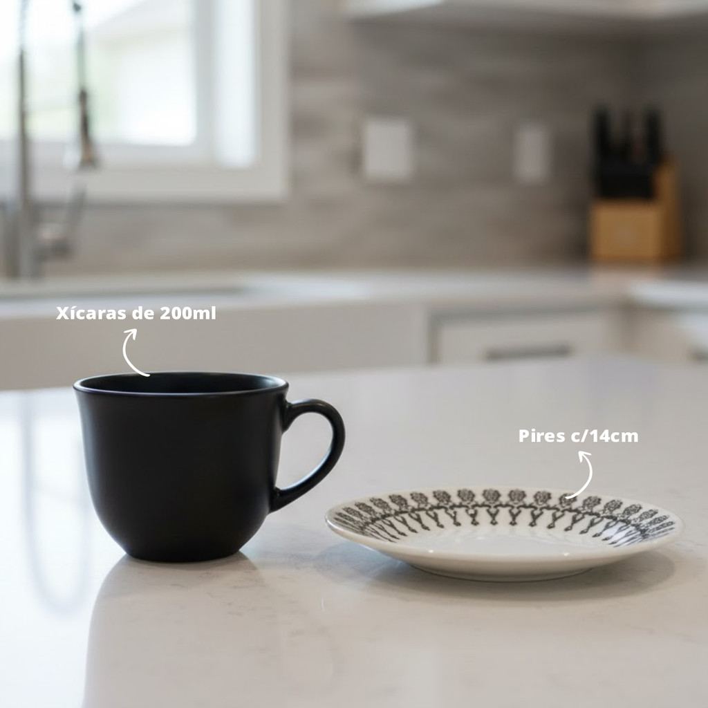 CONJUNTO XICARA CHA C/ PIRES C/ 12PCS 200ML DONNA FOLK