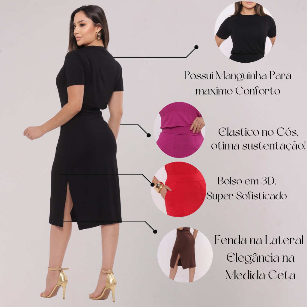 👗 Conjunto Feminino Midi Casual com Fenda - Estilo e Conforto 💃 Perfeito para o dia a dia, trabalho ou um passeio especial! 🌟 Descrição do Produto Conjunto feminino composto por blusa básica de manga curta e saia midi com fenda lateral, confeccionado em tecido leve, macio e confortável. O modelo valoriza as curvas e garante um visual moderno, elegante e versátil. ✨ Características: 🩱 Composição: Tecido leve e elástico (malha de alta qualidade) 👚 Blusa: Manga curta, gola redonda, modelagem confortável 👗 Saia: Comprimento midi, fenda lateral e cós alto que realça a silhueta 💎 Detalhes: Bolsos frontais funcionais 🎨 Cores disponíveis: Azul, Preto, Vermelho, Chocolate e Fucsia 📏 Tamanhos: P, M, G, consultar tabela de medidas) 💖 Destaques: Look completo e prático — ideal para diversas ocasiões Tecido confortável que se ajusta ao corpo Não amassa facilmente Pode ser usado com salto, sandálias ou tênis 🚚 Envio Rápido Garantido! Produto com envio imediato e entrega expressa.