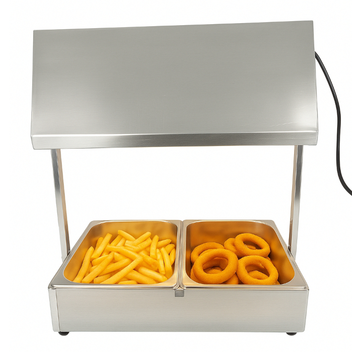 Conservador de Frituras Inox Bivolt 2 Cubas Com Pá para batata Mantém Porções Crocantes Gomes Inox