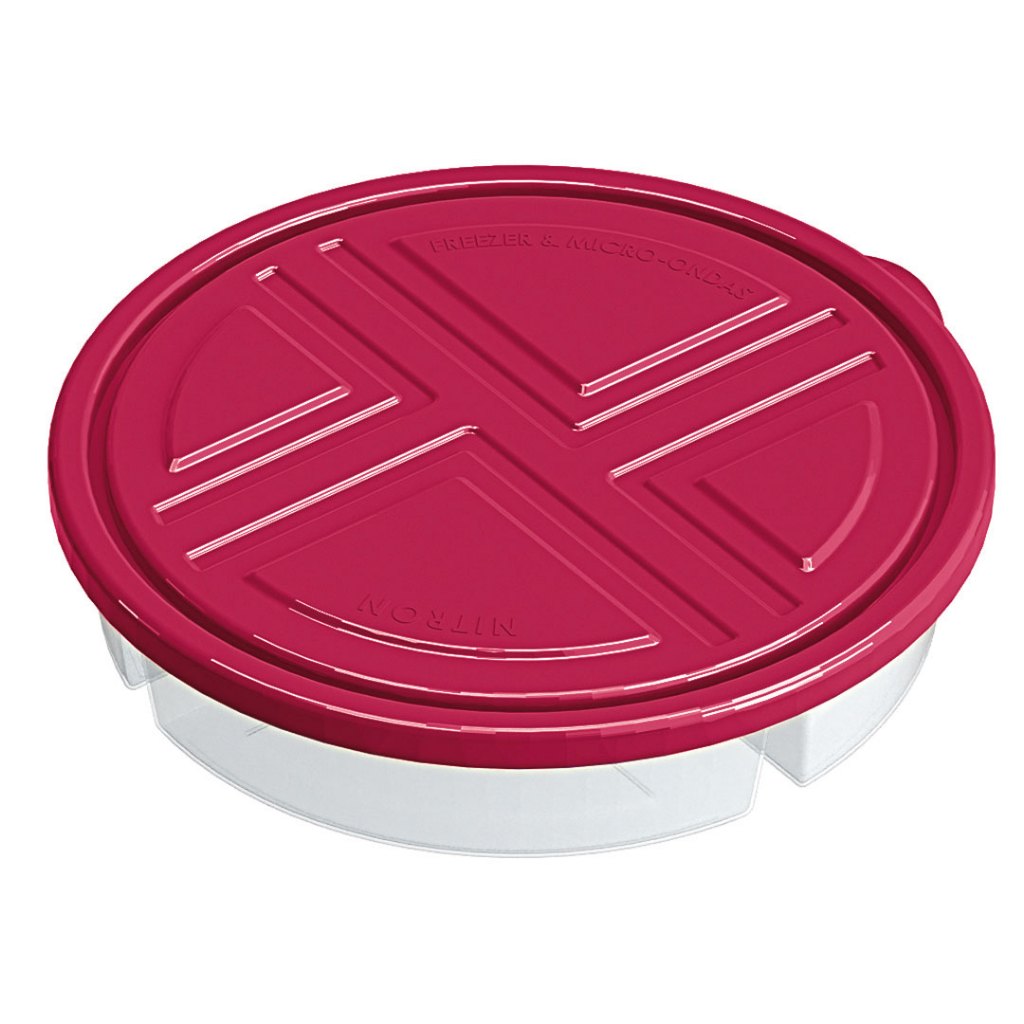CONSERVADORA DE ALIMENTOS 4 DIVISOES PREMIER NITRON _______________________________________ DESCRITIVO: Peso: 160 g Diâmetro: 22,5 cm Altura: 5 cm Capacidade: 1,1 litros _______________________________________ DIFERENCIAIS: BPA Free (Livre de BPA - O BPA é uma substância química que faz mal à saúde) Design alegre que se adequa em todos os momentos Material incrivelmente resistente _______________________________________