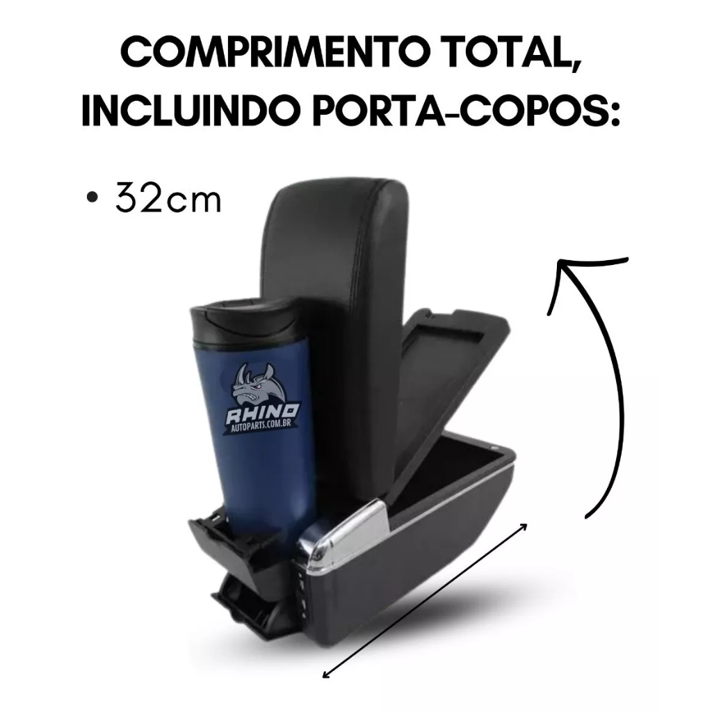 NOS PERGUNTE ANTES DE COMPRAR PARA CONFIRMARMOS SE SERVE OU NÃO EM SEU VEÍCULO! NÃO SERVE PARA OS SEGUINTES VEÍCULOS: PALIO; SIENA; UNO; FOX; GOL; VOYAGE; SAVEIRO; ARGO; CRONOS; CELTA; HB20; CORSA (TODOS) Caracteristicas: - Medida Mínima Da Abertura De Encaixe 11 cm - Medida Máxima De Abertura De Encaixe 19 cm - Largura Do Apoio 13,5 cm - É preciso que o carro tenha entre os reguladores dos bancos e trava do cinto de segurança um espaço de no minimo 12 e no máximo 19 cm - Estrura: Plastica ABS - Material Revestimento: Courvin - Distancia Que O Apoio Desloca Para Frete: 5 cm - Espaço Minimo Necessário Entre Os Bancos Para Instalação: 11cm - Comprimento Total Incluindo Porta Copos: 32cm - 7 Entradas USB Dúvidas frequentes: - O Produto é novo? Sim. Nós trabalhamos apenas com produtos novos, e com garantia. - O Produto é original? Sim. Nós só trabalhamos com distribuidores homologados pelo fabricante. - Tem garantia? Sim. Todos nossos produtos têm 90 dias de garantia de fábrica contra defeitos de fabricação. - O produto é igual ao da foto? Sim. Todas as fotos são fieis ao que você receberá. - Em quanto tempo recebo minha compra? É muito simples, basta colocar seu CEP no calculador de frete do anúncio. - Como faço para saber se o produto deste anúncio se aplica ao meu veículo? Na descrição do anúncio você encontra todas as informações das aplicações corretas, se a informação que precisa não está na descrição do anúncio, deixe sua pergunta que nossa equipe de especialistas está preparada para solucionar qualquer dúvida. - Tem alguma dúvida sobre o produto ou sobre a compra? Deixe sua pergunta abaixo, que responderemos prontamente. Atendimento: Nosso horário de atendimento é: 24 horas Temos uma Equipe de Atendimento e Suporte Técnico à disposição. Após a compra, caso tenha alguma dúvida ou algum problema com o seu produto, entre em contato conosco utilizando os canais informados pelas mensagens de pós-venda ou pelo próprio chat de atendimento. • O cumprimento do prazo de entrega é de total responsabilidade da Transportadora e esse prazo é informado no momento da compra podendo ser alterado por condições logísticas. Importante: • Somos Loja Oficial Shopee; • Todos os nossos produtos são checados e bem embalados antes da expedição. • Recomendamos sempre que toda e qualquer instalação seja realizada por profissionais especializados para evitar problemas futuros, pois não somos responsáveis pela má instalação ou mau uso do produto. • Confira se os dados cadastrais estão atualizados, principalmente se o endereço de entrega está correto para evitar que o seu produto retorne e mantenha o número de contato atualizado para que possamos entrar em contato caso necessário. Quem somos: Somos uma empresa, localizada no Rio de Janeiro, com mais de 50 anos de mercado no segmento de atacado e distribuição de Auto Parts em geral. Hoje, a Rhino conta com mais de 10.000 produtos em seu portfólio nos segmentos de refrigeração automotiva, arrefecimento automotivo, suspensão automotiva, mecânica em geral, moto parts e acessórios automotivos. RHINO AUTOPARTS - O Maior E-commerce de Autopeças e Acessórios Automotivos do Brasil.