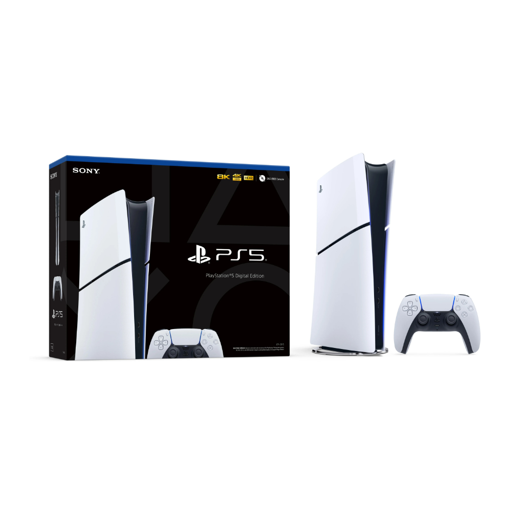 O console PS5® Edição Digital traz novas possibilidades de jogos que você nunca imaginou. Experimente o carregamento extremamente rápido de um SSD de ultra-alta velocidade, imersão mais profunda com ajuda do feedback tátil, gatilhos adaptáveis e áudio 3D, além de uma geração totalmente nova de jogos PlayStation® incríveis. O PS5 Edição Digital é uma versão totalmente digital do console PS5 sem unidade de disco. Faça login com sua conta da PlayStation Network e acesse a PlayStation®Store para comprar e baixar jogos. Na velocidade da luz Domine o poder de uma CPU e GPU personalizadas e o SSD com E/S integradas que redefinem as regras do que o console PlayStation pode fazer. Jogos impressionantes Maravilhe-se com os gráficos incríveis e experimente os recursos do novo PS5™. Imersão de tirar o fôlego Descubra uma experiência de jogos mais profunda compatível com feedback tátil, gatilhos adaptáveis e tecnologia de áudio 3D. Suporte vertical vendido separadamente *Console PS5® (grupo de modelos CFI-2100 – slim). Os modelos CFI-2100 são compatíveis com os acessórios do PS5 para produtos CFI-2000, incluindo tampas do console (vendidas separadamente). É necessário ter uma conta para a PlayStation Network. Termos completos disponíveis – playstation.com/PSNTerms. Áudio 3D por meio de alto-falantes embutidos na TV ou fones de ouvido estéreo analógicos/USB. É necessária a configuração e a atualização para o software mais recente do sistema.