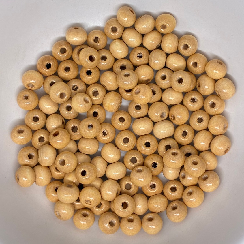 Conta Redonda de Madeira 8mm Com Furo Passante Com 100 Unidades