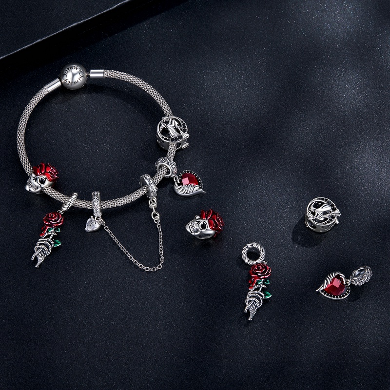 Contas Bamoer 925 Rosa De Prata E Crânio Pandente De Sangue Da Série Halloween Acessórios Diy Para Mulheres Homens Presentes