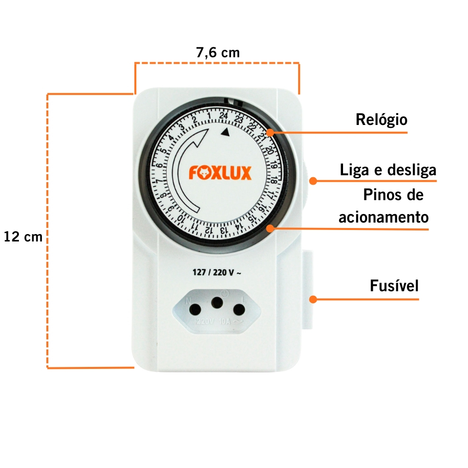 Controlador de Tempo Analógico Bivolt Foxlux para Automação Elétrica Iluminação