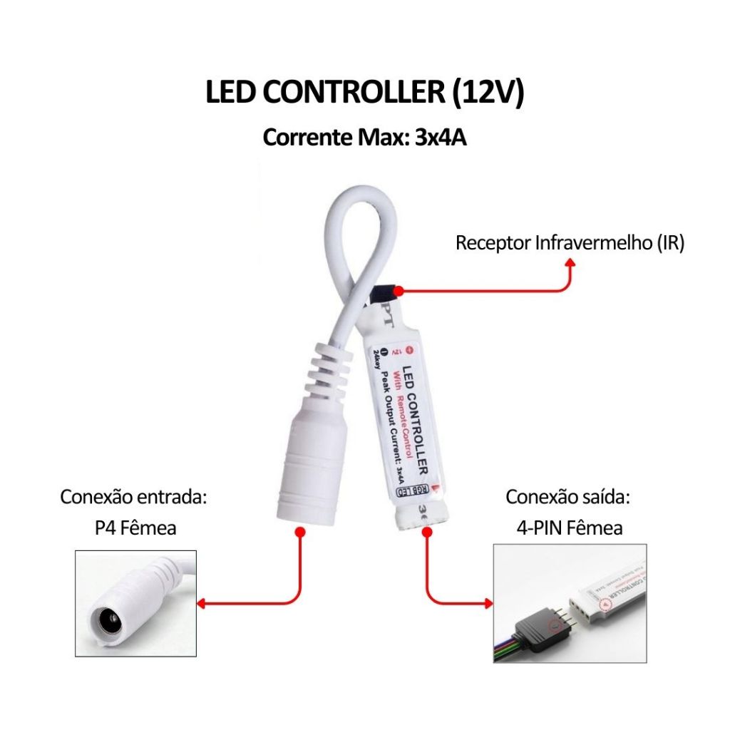 | Controlador Fita LED RGB 12V 4 Vias Controle 24 Teclas 16 Cores Efe... este produto | R$ 15,95 | — | 5.0/5 | — |