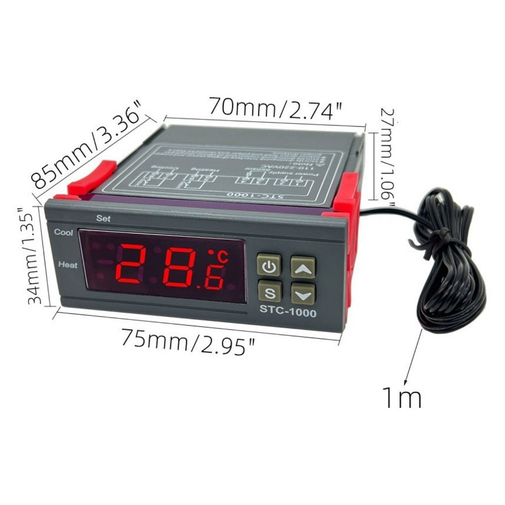 Esse aparelho pode ser usado no controle de temperatura de ambientes Alguns exemplos: Aquários, estufas, chocadeiras, refrigeradores, viveiros, hidroponia entre outros. É possível calibrar a temperatura. Possui alarme quando a temperatura exceder o limite ou em caso de erros. Especificações: Alimentação : 110VAC - 220VAC (BIVOLT automático) Faixa de Medição: -50ºC - 99.9ºC Resolução: 0.1ºC Consumo Energia: <3W Capacidade dos contatos do rele de saída: 10A/220VAC Comprimento da sonda sensor: 1 metro. (INCLUSO)