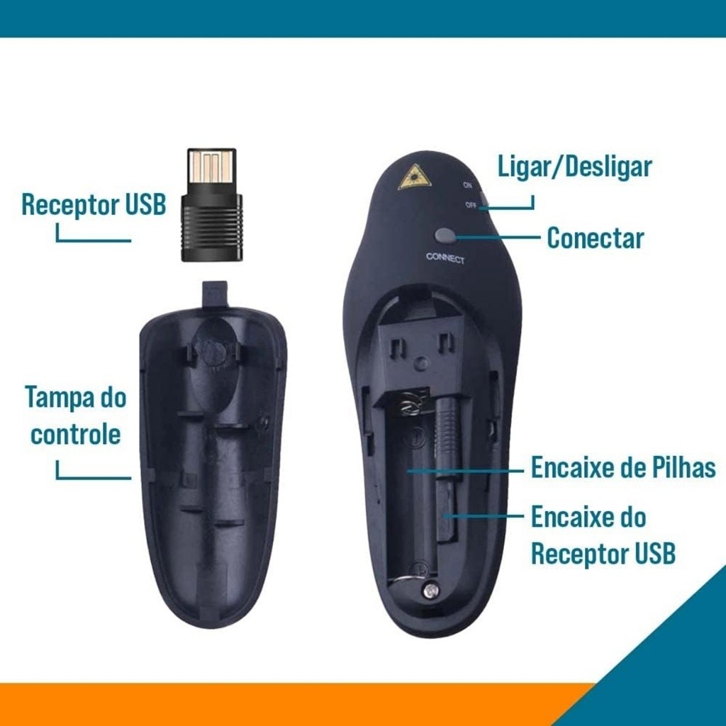 Controle Apresentador Caneta de Slide Sem Fio Passador Power Point Aula Palestra Com Laser