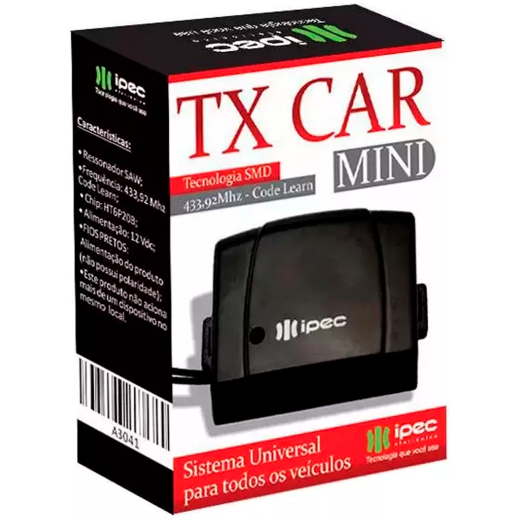 COMERCIAL VIPASA DISTRIBUIDORA. Controle Remoto IPEC para Acionamento com Farol Alto de Carros e Motos (Tx Car) Acione o motor de seu portão com apenas um toque no farol alto de seu veículo! Modelo Disponível: • Radio Transmissor Tx Car Mini 433,92MHz Descrição Técnica: • À prova d’água • Alimentação 12VDC • Sistema Code Learning • Frequência 433,92MHz • Dimensões: A 54mm x L 36mm x P 19mm • Não permanece ativo com o farol alto ligado • Compatível com as marcas que possuam code learning 433,92 Mhz • Permite controlar a abertura e fechamento de portões através do farol alto de qualquer veículo ATENÇÃO Este acessório deve ser instalado para uso com corrente contínua. Para instalação em motos verifique se a mesma é compatível com o uso deste acessório, pois a maioria possui corrente alternada. Conteúdo da Embalagem: • 01 Tx Car Mini (Rádio Transmissor Tx Car 433,92MHz) Atenção!!! NÃO compatível com motores Rossi e Peccinin. O público-alvo deste produto é composto por proprietários de portões automáticos residenciais ou comerciais que desejam adicionar funcionalidades de controle remoto ao seu sistema, juntamente com a capacidade de acionar o farol do portão. Controle remoto portão IPEC A3041 acionador de farol Controle portão elétrico Controle remoto para portão automático IPEC controle de portão Acionador de farol para portão Controle remoto universal para portão Controle de acesso para portões Controle de segurança para portão Controle de abertura de portão Controle portão A3041 barato Acessório para portão com farol Controle remoto de fácil instalação IPEC controle de portão eficiente Controle de acesso sem fio Controle portão IPEC Acionador farol portão Controle remoto portão elétrico Controle acesso IPEC Controle universal portão Controle remoto sem fio Instalação fácil Segurança residencial Automação de portões Controle de portão remoto Prático Eficiente Conveniente Versátil Moderno Seguro Tecnológico Durável Inovador Compacto Facilita o acesso ao seu portão de forma remota. Adiciona funcionalidade de acionamento de farol. Aumenta a segurança da sua propriedade. Instalação simples e rápida. Compatível com diversos modelos de portões. Controle remoto sem fio. Maior comodidade e conveniência. Moderniza o sistema de portão. Durabilidade garantida. Reduz a necessidade de sair do veículo em condições adversas. Dispositivo de controle de portão Comando de abertura de portão Controlador de acesso a portões Sistema de acionamento remoto de portão Aparelho de controle de entrada Facilita o acesso e a entrada em sua propriedade, economizando tempo e esforço. Aprimora a segurança, permitindo a ativação do farol do portão para identificação noturna. Moderniza e automatiza o sistema de portão, tornando-o mais conveniente e eficiente. COMERCIAL VIPASA DISTRIBUIDORA.