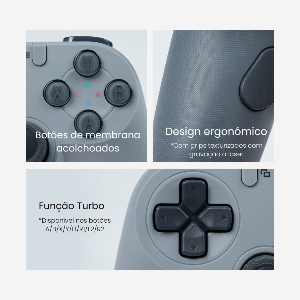 Controle GameSir Tegenaria T3 Lite - Hall Effect, 1000Hz, Switch, PC, Android, iOS Reviva a vibe dos anos 90 com o GameSir Tegenaria T3 Lite, um controle com fio de design retrô que combina estilo nostálgico com tecnologia avançada. Compatível com Nintendo Switch, PC, Android, iOS e Steam, este controle entrega precisão impecável graças aos joysticks Hall Effect anti-drift e uma taxa de polling de 1000Hz. Os motores duplos de vibração assimétrica proporcionam feedback tátil imersivo, enquanto os dois botões traseiros mapeáveis e a função Turbo otimizam sua jogabilidade. Com design ergonômico, grips texturizados antiderrapantes e botões de membrana confortáveis, é perfeito para longas sessões de jogos FPS, corridas e mais. Destaques: Conexão com fio de latência ultrabaixa para respostas instantâneas Joysticks Hall Effect GameSir™ com controle 360° e sem drift Taxa de polling de 1000Hz para desempenho competitivo Gatilhos e botões de membrana duráveis e confortáveis Motores duplos de vibração para feedback realista Dois botões traseiros programáveis para ações rápidas Design ergonômico com grips antiderrapantes gravados a laser Função Turbo personalizável (A/B/X/Y/L1/R1/L2/R2) para jogadas eficientes Especificações Técnicas: Conexão: Com fio (USB-C) Plataformas: Switch, PC, Android, iOS, Steam Joysticks: Hall Effect GameSir™ anti-drift Gatilhos: Analógicos de membrana Botões ABXY e D-pad: Membrana Motores: Duplos assimétricos com vibração Botões mapeáveis: 2 traseiros Função Turbo: Sim Taxa de Polling: 1000Hz Software: GameSir Connect (testes e atualizações de firmware) Tamanho do produto: 163 x 99 x 60 mm Peso líquido: 230g Conteúdo da embalagem: Controle, Manual (QR code) Por que escolher o Tegenaria T3 Lite? Leve (apenas 230g), com latência mínima e suporte ao app GameSir Connect para personalização, este controle é ideal para gamers que buscam conforto, durabilidade e precisão a um preço acessível. Perfeito para jogos competitivos e casuais! Eleve sua experiência de jogo com o GameSir Tegenaria T3 Lite!