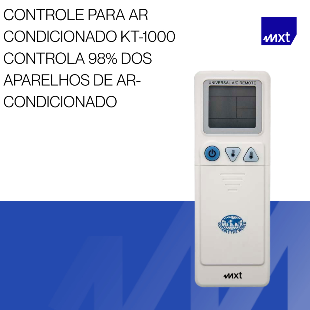 CONTROLE PARA AR CONDICIONADO UNIVERSAL MARCA: MXT MODELO: C01065 CONTROLE PARA AR CONDICIONADO KT-1000 CONTROLA 98% DOS APARELHOS DE AR-CONDICIONADO