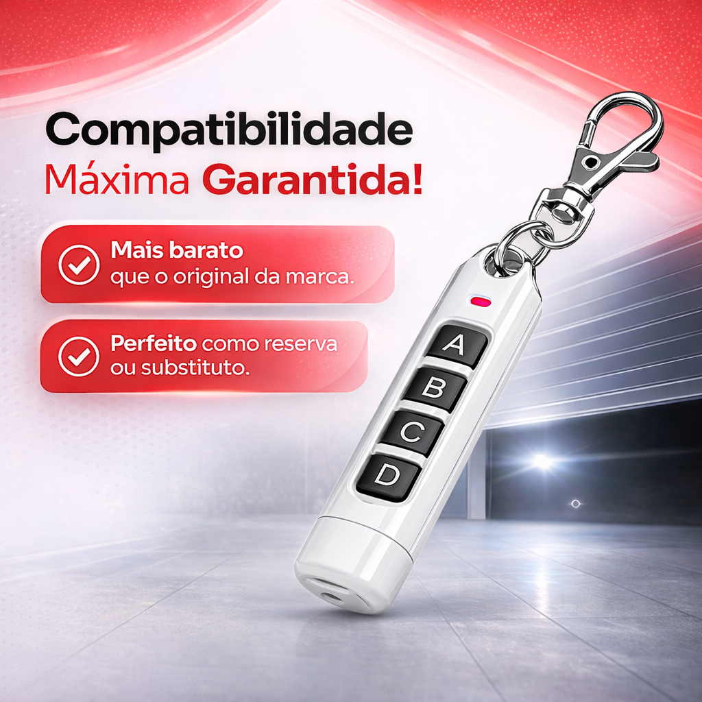 Controle Portão Eletrônico Universal 433MHz Chaveiro Mini 4 Botões Branco PPA Garen Seg