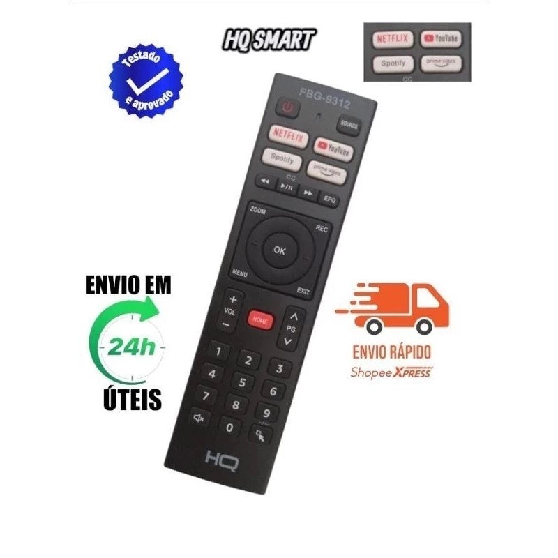 Controle Remoto Compativel Tv HQ Smart Hqs43nkh FBG-9312 ***PILHAS NÃO INCLUSAS