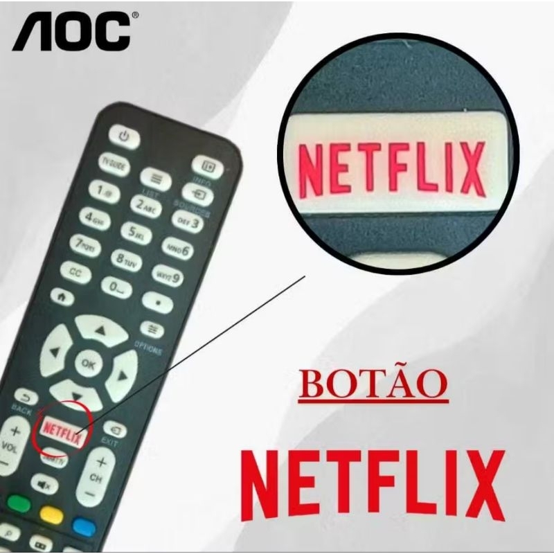 Controle Remoto de TV Universal para AOC SmartTv com Botão Netflix com Pilhas