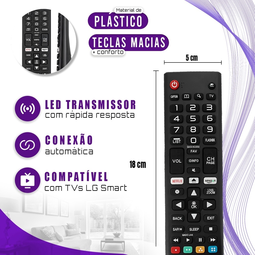 Controle Remoto LG Compatível com todas Tv LG Universal Netflix e Amazon Tv LG 4k AKB 8035