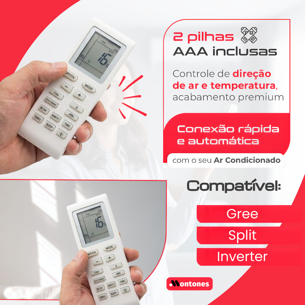 Controle Remoto Para Ar Condicionado Gree Split Inverter + 2 Pilhas