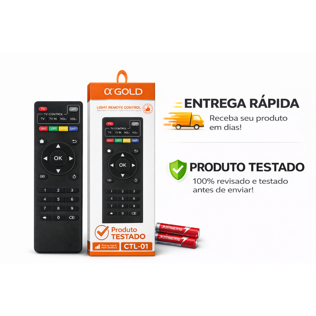 📡 Controle Remoto Para TV Box Inteligente + Pilhas 🚀 Produto à Pronta Entrega | Envio Rápido 🔋 Controle Remoto com Pilhas – Praticidade, Desempenho e Conexão Rápida Seu controle antigo parou de funcionar ou está com falhas? Temos a solução ideal para você! Apresentamos o Controle Remoto de Alta Qualidade para TV Box, desenvolvido para oferecer uma experiência prática e eficiente, com ótima resposta aos comandos e conforto no uso diário. Fabricado em plástico resistente com teclas de borracha macias, é leve, durável e ergonômico. A conexão é simples e rápida, perfeita para quem busca praticidade no dia a dia. ⚙️ Características do Produto ✅ Compatibilidade: Desenvolvido para aparelhos TV Box (não controla diretamente a TV) ⚡ Distância de transmissão: Até 10 metros 🔋 Alimentação: 2 pilhas AAA (inclusas) 📏 Dimensões aproximadas: 14 cm (altura) x 4,3 cm (largura) x 2,5 cm (espessura) 💪 Material: Plástico resistente com teclas de borracha macias 🎯 Instalação fácil: Basta inserir as pilhas e começar a usar ⚠️ Instruções Importantes Antes da compra, verifique se seu controle antigo é igual ao modelo mostrado nas imagens. Este controle é indicado para TV Box e não funciona diretamente em televisores. 💥 Por que escolher este produto? ✔ Produto novo e pronto para envio imediato ✔ Acompanha pilhas – pronto para uso ✔ Excelente custo-benefício ✔ Ótima durabilidade e resposta rápida 🛒 Compre agora e tenha seu Controle Remoto para TV Box pronto para usar! Mais praticidade, conforto e desempenho no seu dia a dia. ⚠️ ATENÇÃO: Confira o modelo do seu controle antes da compra. Caso tenha dúvidas, envie uma mensagem no chat que ajudamos a confirmar a compatibilidade.
