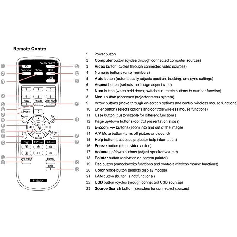 Controle Remoto Projetor Epson 3220 5230 S18+ S17 X24+ E1248
