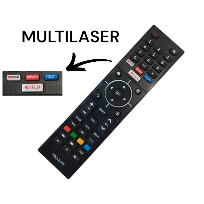Controle Remoto Smart Tv Multilaser LE-7277 FBG-9167 MODELOS : Tl030 Tl031 Tl035 Tl036 TL040 ***PILHAS NÃO INCLUSAS***
