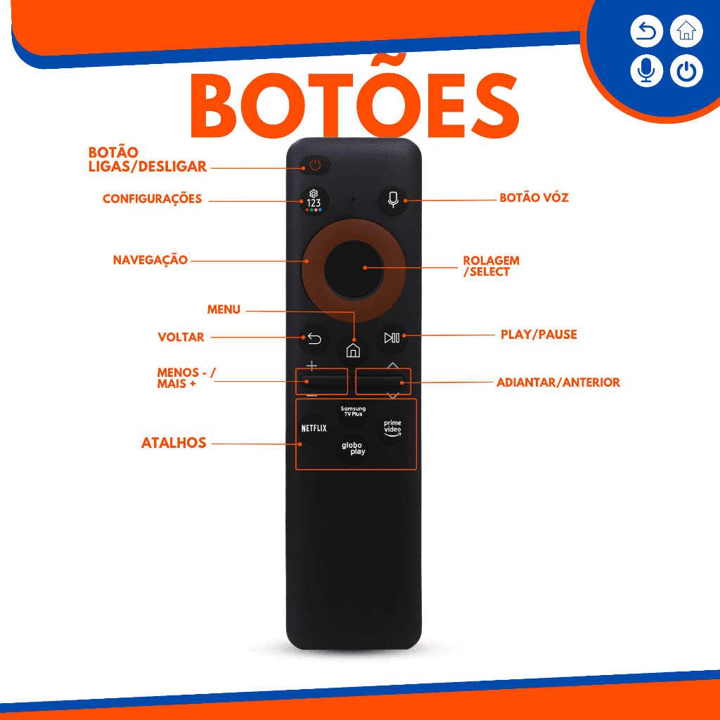 Controle remoto Solar compatível TV Samsung com comando de voz