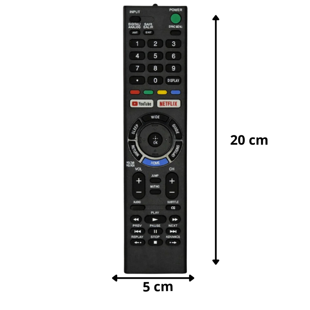 Se o seu Controle Remoto original quebrou não se preocupe, pois temos a solução. O Controle Remoto fabricado pela SKY foi desenvolvido com material de alta qualidade (teclas macias, plástico resistente e um led transmissor com excelente tempo de resposta) oferecendo a mesma qualidade e utilidade de ter um controle original em mãos. Informações do Produto: Modelos compatíveis: RMT-TX300B KD-43X727E KD-49X705E KD-49X706E KD-49X725E KD-49X727E KD-55X705E KD-55X706E KD-55X725E KD-55X727E KD-60X695E KD-60X697E KD-65X725E KD-65X725E KD-65X727E Composição: Plástico e Teclas de borracha Dimensão: 5 cm x 20 cm Alimentação: 2 Pilhas AAA 1.5V Cor: Preto Embalagem: Unitário - Pilhas não Incluído Fabricante: Produto Importado (Genérico / Paralelo) Não precisa programação, apenas colocar as pilhas e usar. Verificar a compatibilidade do seu aparelho Este produto é uma peça de reposição. Seu controle remoto original deve ser exatamente igual ao exibido na foto. Certifique-se de que esteja adquirindo o modelo correto.