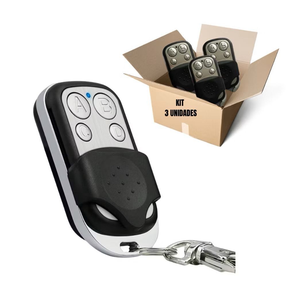 Controle Remoto Universal para Portão Elétrico Eletrônico Garagem com Chaveiro 433mhz 4 Botões **ENVIO EM ATE 24H APÓS A CONFIRMACAO DO PAGAMENTO** **PARA ESCOLHER A QUANTIDADE BASTA SELECIONAR NA VARIAÇÃO** CARACTERÍSTICAS DO PRODUTO: Frequência: 433.92MHz Botões: 4 botões independentes Alcance máximo: 50 metros Tecnologia: código fixo (Code Learning) NÃO é compatível com centrais do tipo ROLLING CODE(Código Rolante), independente da marca. MARCAS COMPATÍVEIS: Agl, Click, Clipse, Compatec, Cronn, Ect, Garen, Hombrus ,Intelbras, Ipec, Jfl, Nbm, Omega Sat, Positron, PPA (até 2018), Proter, Rcg, Seg, Sulton, Uniseg, Unisystem, NÃO é compatível com centrais das marcas: PECCININ, ROSSI, NICE, LINEAR, GENNO Importante: Antes de comprar, verifique a compatibilidade com o seu equipamento. Garanta já o seu! Envio rápido e suporte para dúvidas.