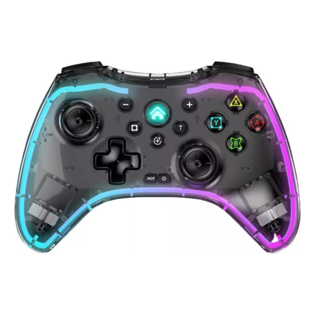 ATENÇÃO: NA HORA QUE FOR CONECTAR COM O CELULAR, TEM QUE FAZER O SEGUINTE COMANDO. LIBAR BLUETOOTH. BOTÃO---HOME + A. NO VIDEO GAME, ---HOME + B. Controle Joystick Sem fio Para N Switch, PC, Game Pad LEG RGB. Este produto adota um design ergonômico e é confortável; A Alça é adequada para uso em Switch, PS3/PS4, Android, OS MFI/Apple Arcade, PC, Stream e outras Plataformas. - Suporta conectividade sem fio de alta velocidade. - Suporta Conexão sem fio do Console de jogos PS3/PS4/SWITHC para jogar. - Suporta conexão sem fio de Laptop do sistema Windows 10. - Função de vibração do motor. - Corpo transparente, efeito de iluminação RGB. - Existem 2 Botões de Definição macro na parte traseira. INFORMAÇÕES TÉCNICAS: - Modelo: BSP-03 - Cor: Transparente. PACOTE ÍNCLUI: 1x Controle Wireless Gamepad. 1x Cabo USB-C 1x Manual Instrução. Para que a troca ou a devolução do produto seja feita, o mesmo deverá estar nas seguintes condições: - Na embalagem original; - Sem indícios de estrago por mau uso; - Acompanhado do manual e com todos os acessórios;