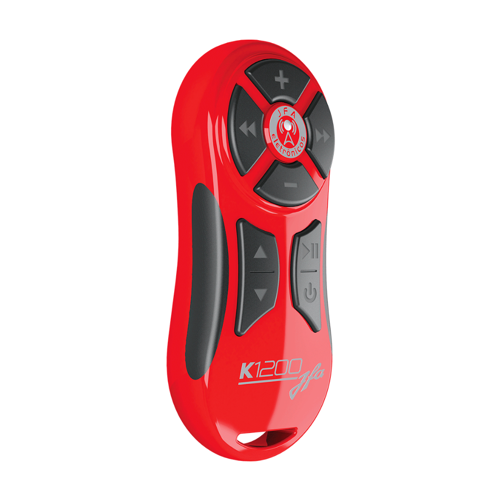 CONTROLE COMPLETO JFA K1200 VERMELHO Alcance além da vista! O Controle K1200 se destaca por ser o de maior alcance disponível no mercado: 1200 metros de alcance em área aberta. Esta funcionalidade lhe confere o melhor funcionamento em locais como exposições e arenas, onde ocorre maior interferência de sinais RF durante os eventos. Destaques do K1200: Alcance de 1200 metros em área aberta (visada). Design anatômico com excelente ergonomia; Teclas em silicone de alta resistência gravadas a laser; Chassis em ABS com cores exclusivas; Central slim com receptor ultra sensível. Características técnicas TRANSMISSOR: -8 funções definidas podendo ser reconfiguradas (modo aprender); -Teclado em silicone com gravação em baixo relevo; -Chassis em plástico ABS (diversas cores); -Frequência de operação 433,92 MHz; -Alimentação 12V bateria modelo A23. RECEPTOR: -Modo aprender (copia e codifica as funções do controle IR original); -Modo memória (contém em sua memória os principais players do mercado); -Chassis em plástico ABS preto; -Frequência de operação 433,92 MHz; -Alimentação 9 a 16Vdc; ITENS INCLUSO -01 CONTROLE K1200 Vermelho -01 RECEPTOR -Manual do usuário -Chaveiro JFA
