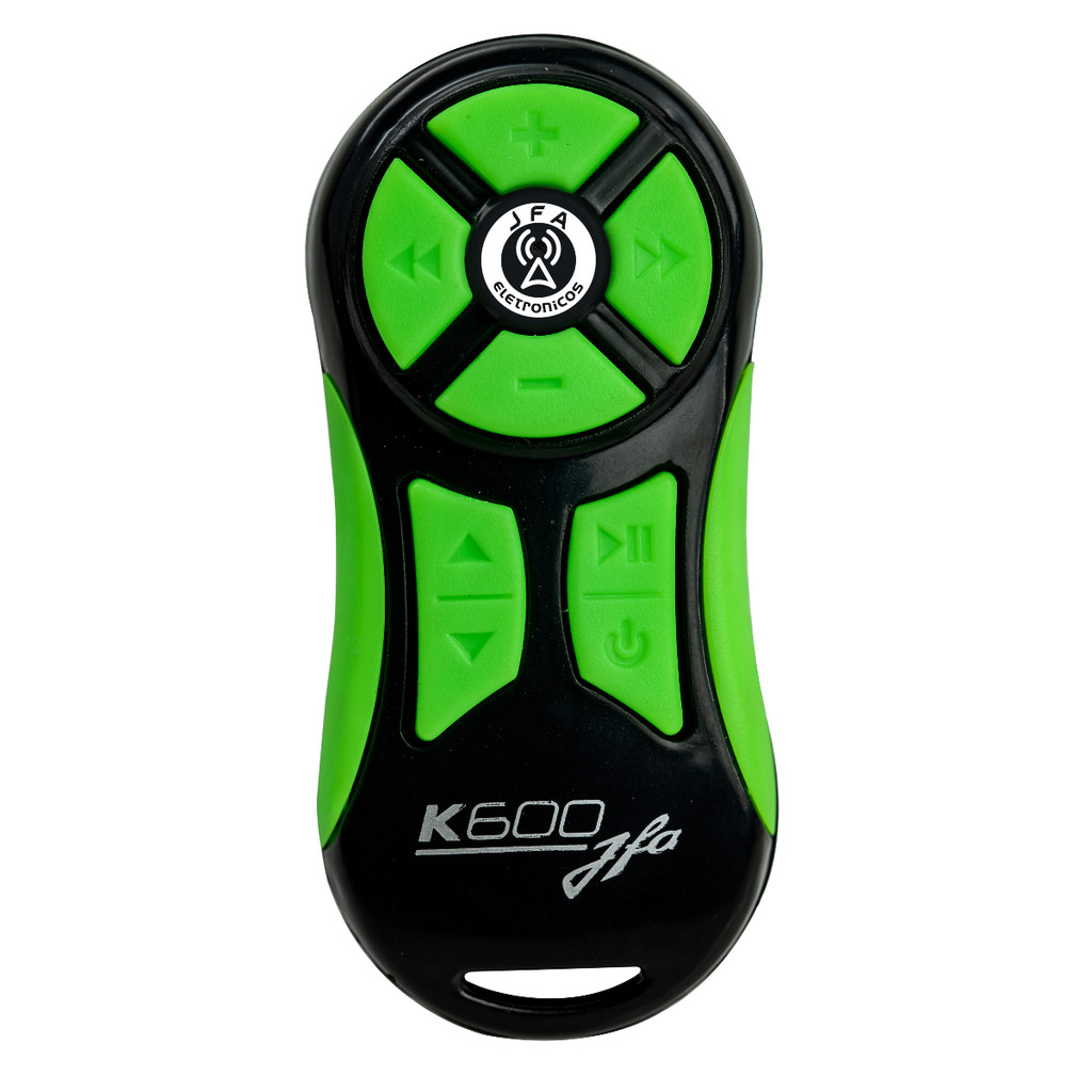 Há 50 anos atuando no mercado automotivo oferecendo qualidade, inovação e garantia da satisfação total dos nossos clientes. . Produtos novos e lacrados a pronta entrega; . Produtos originais e de qualidade com garantia de fábrica; . Atendimento personalizado. _______________________________________________________________ CONTROLE LONGA DISTÂNCIA JFA K600 ORIGIANAL + CENTRAL + CHAVEIRO - Cor do controle: Preto com verde O Controle K600 Universal da JFA possui um dos melhores alcances do mercado, até 600m em área aberta, o que faz toda diferença em eventos de som automotivo, já que vários controles são usados simultaneamente. Além disso, o Controle K600 Universal pode ser configurado em dois modos de funcionamento: - MODO CLONAR OU APRENDER: copia e codifica as funções a partir do controle IR original, com a tecnologia do infravermelho. - MODO MEMÓRIA: tem cadastrado em sua memória as configurações dos principais aparelhos de som e vídeo do mercado. INFORMAÇÕES TÉCNICAS: - Alimentação transmissor: 12V - Bateria A23 - Alimentação receptor: 9Vdc a 16Vdc - Frequência de operação: 433,92 MHz - Modulação: ASK - Teclado: Silicone - Resistência à água: Não INFORMAÇÕES ADICIONAIS: - Alcance de até 600 metros em área aberta; - Central slim com receptor ultrassensível; - Teclas de silicone com alta resistência, gravadas em baixo relevo; - Design e ergonomia que facilitam o uso. CONTEÚDO DA EMBALAGEM: - Controle K600 Universal Preto com verde - Central Receptor - Chaveiro - Manual Digital (Via QR code na embalagem ou acessar site do fabricante) OBS: Não são vendidos os itens separados, apenas todos juntos! ATENÇÃO: - Garantia de 12 meses. - Recomendamos que a instalação seja feita por profissional especializado e não nos responsabilizamos pelo mau uso do produto. - Imagens meramente ilustrativas.