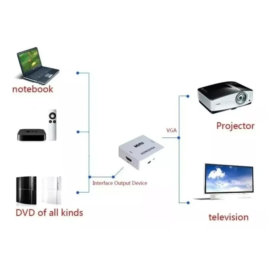 Descrição EVITE DEVOLUÇÕES DESNECESSÁRIAS, LEIA A DESCRIÇÃO COM ATENÇÃO. =========================================================== - NÃO é um adaptador bidirecional (não funciona ao contrario), só pode suportar sinal de dispositivos de fonte HDMI para monitores VGA - NÃO pode transmitir sinais de VGA para HDMI. - Compatível com vídeo games Introdução: O HDMI para VGA é um conversor de vídeo HD que converte sinal HDMI para sinal analógico VGA e áudio P2. Ajudando usuários que desejam transformar o sinal HDMI em VGA, a utilização do aparelho é muito fácil. Basta plugar os cabos, ligar o cabo USB de alimentação e utilizar. Vale ressaltar que o aparelho não converte o sinal de forma inversa, então ele apenas transforma o sinal HDMI em sinal VGA, não fazendo a função inversa. Características: · Não há necessidade de instalar drivers, portátil, flexível. Baixo consumo de energia via USB. Sincronização de áudio com vídeo Capacidade de largura de banda de apoio @ 60Hz Características: Plug and Play; Alimentação: 5VDC via porta USB; Sincronização de áudio e vídeo; Suporta resolução até 1080p (1920x1080); Cor: branco; Especificações: Porta de entrada: HDMI Fêmea; Porta de saída: VGA Fêmea e P2 3.5mm; Dimensões : 66(L) x 55(C) x 20(A) mm; Incluso: 1 Conversor saída HDMI Para VGA 1 Cabo USB 2.0 para alimentação (itens comprado a parte) - Não esta incluso o Cabo P2 para P2 - Não esta incluso o Cabo VGA para VGA - Não esta incluso o cabo HDMI para HDMI ATENÇÃO : Somente aceito o produto se não tiver nada danificado visualmente, o adaptador, a caixinha interna ou externa, cabo de alimentação Garantia do vendedor: 2 meses