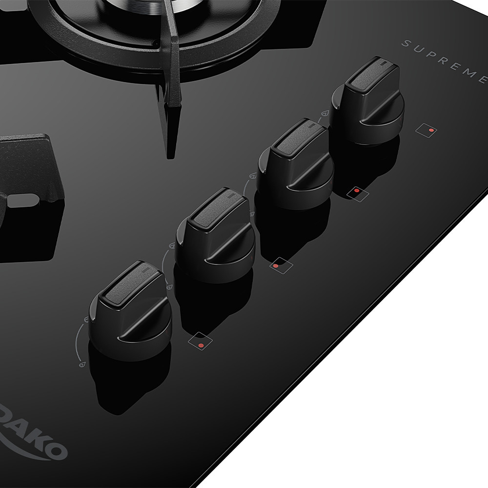 Cooktop 4 Bocas a Gás Dako Supreme com Queimador Tripla Chama e Mesa de Vidro Temperado Preto Bivolt