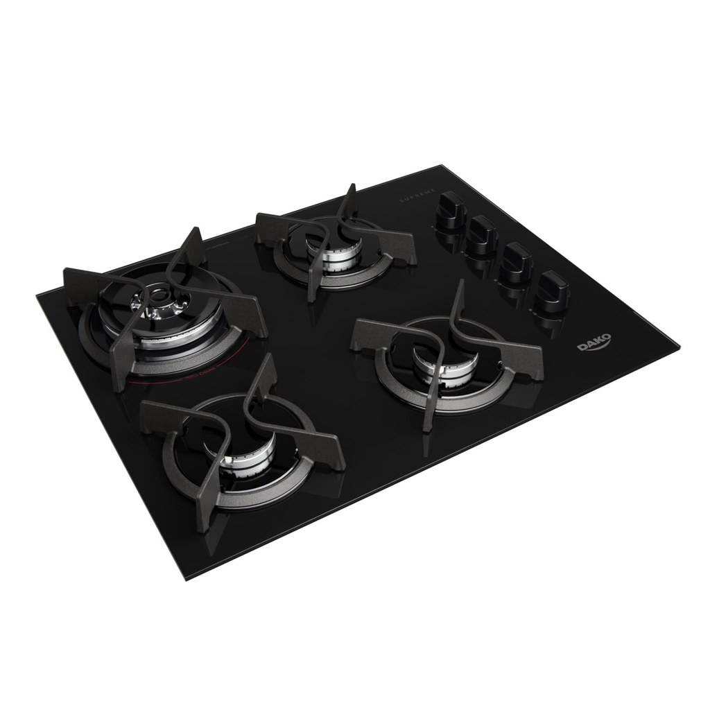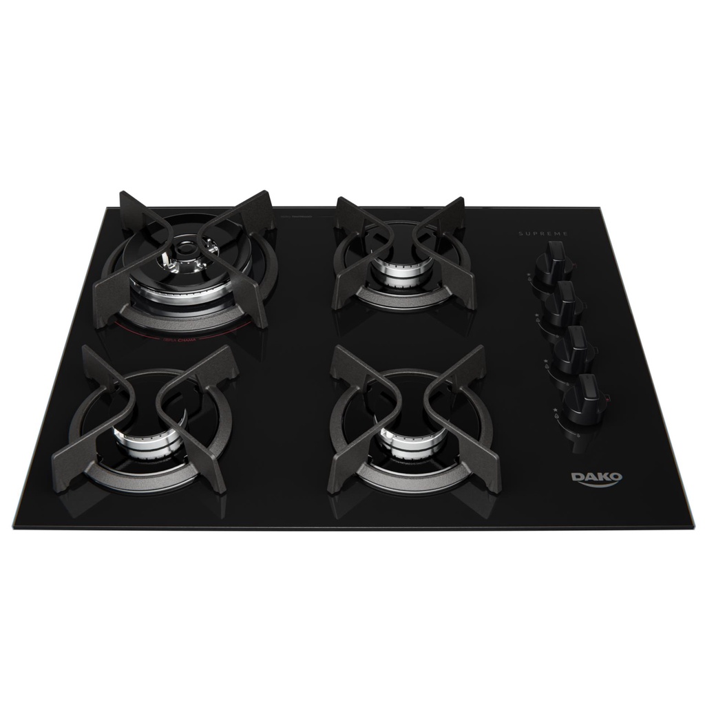 Cooktop 4 Bocas Preto com Mesa de Vidro e Tripla Chama Dako Supreme Bivolt
