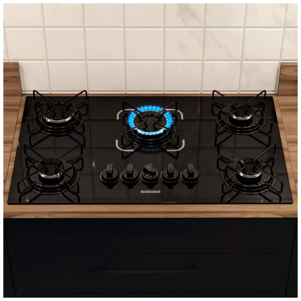 Cooktop 5 Bocas Itatiaia Essencial Vidro Temperado Gás 5Q Preto Bivolt - 3700000193