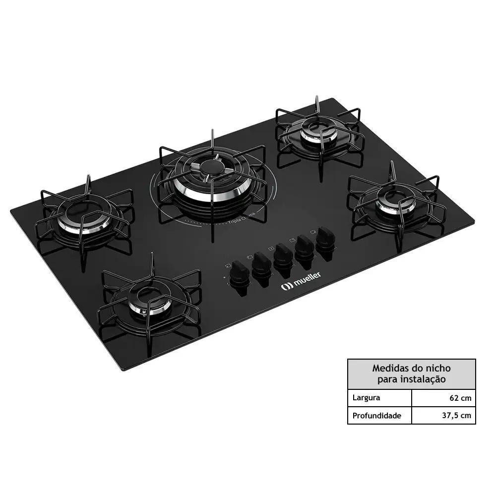 Cooktop a Gás Mueller 5 Bocas Tripla Chama Preto MCG135BG1 – Bivolt