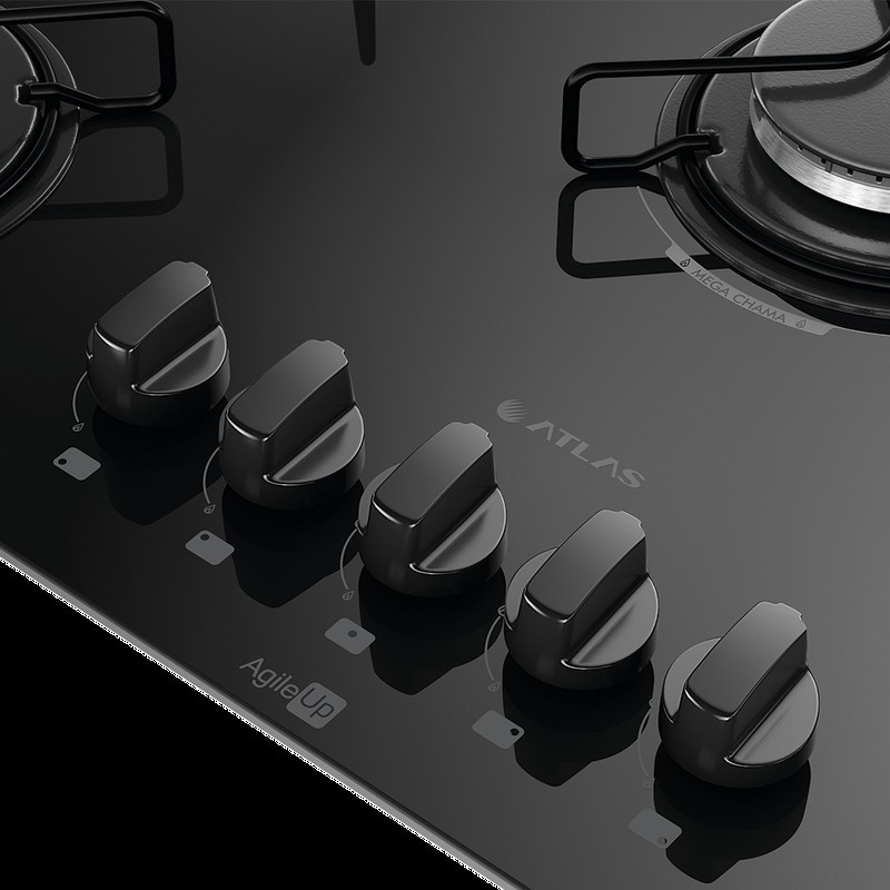 Cooktop Atlas 5 Bocas Ágile Up Mesa de Vidro