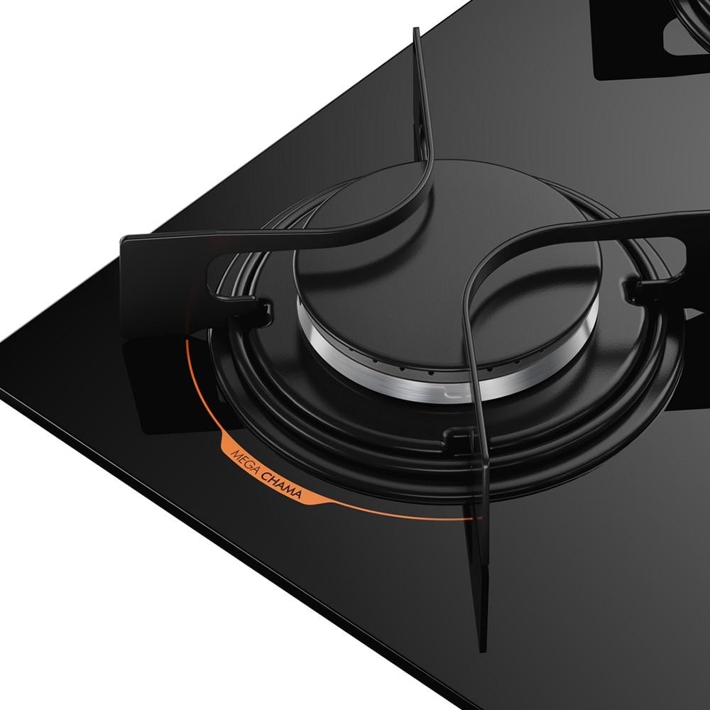 Cooktop Atlas U Top 4 Bocas Preto Vidro Temperado Mega Chama Eficiente Design Moderno
