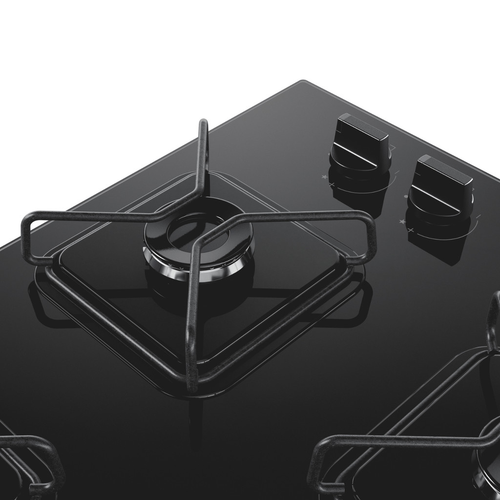 Cooktop Brastemp 4 bocas a gás com grades de ferro fundido e chamas especiais que garantem potência, estabilidade e precisão no preparo.