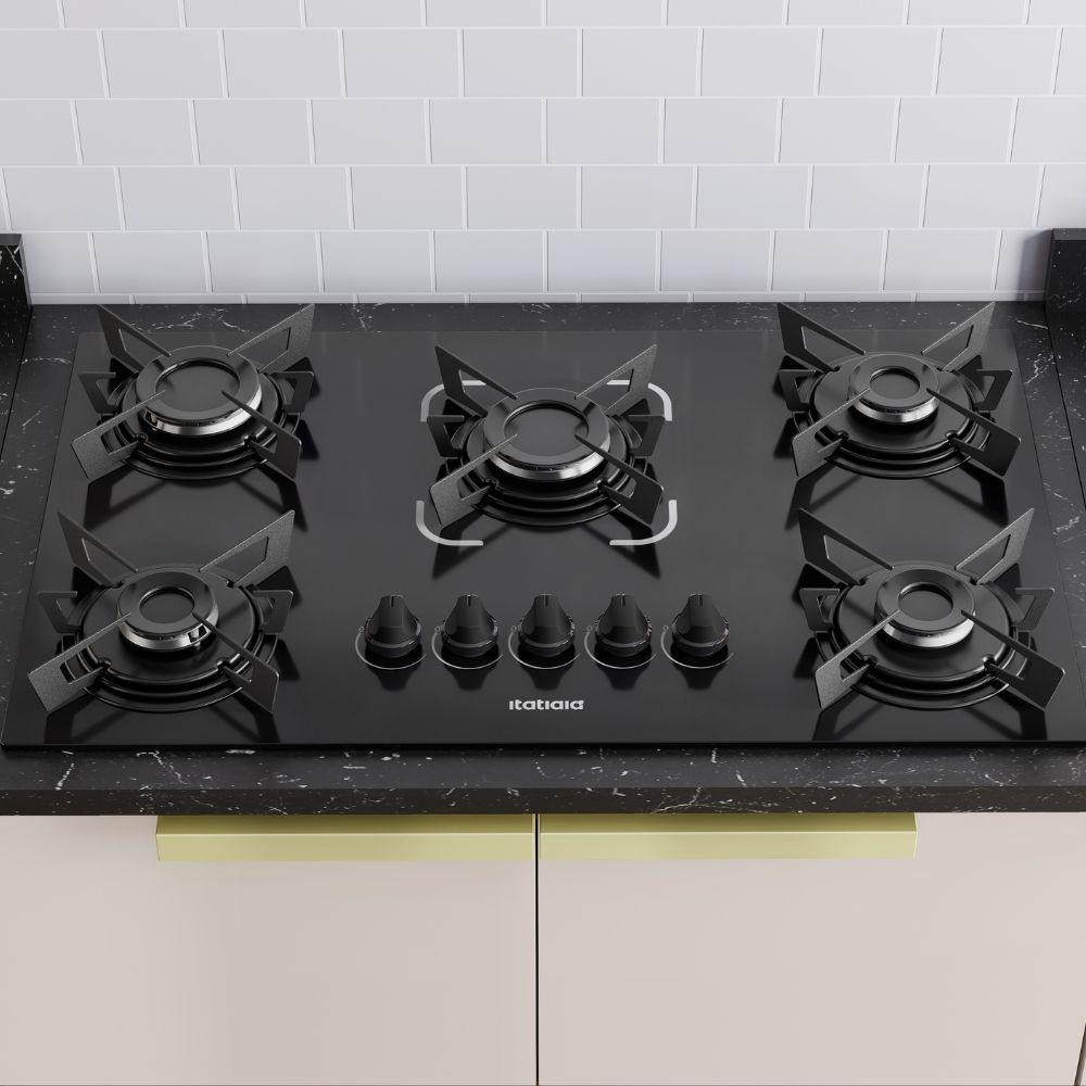 Cooktop Itatiaia Electra 5 Bocas Mesa de Vidro Temperado e Acendimento Superautomático Preto Bivolt