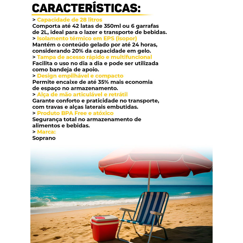 Cooler Caixa Térmica Tropical 28L Soprano Churrasco P/ Praia Pesca Viagens Bebidas