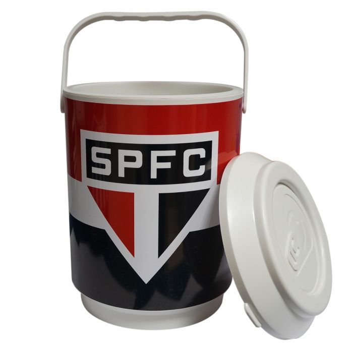 Perfeito para os torcedores do celebrarem as conquistas da equipe, o cooler do mantém as suas bebidas sempre geladas. A peça possui capacidade para 10 latas (350ml), além de uma alça que facilita o manuseio. - Transporte: por alça rígida articulável ; - Tampa: móvel fixado por encaixe ; - Isolamento interno: entre paredes com chapa de isopor prensado; - Personalização: Adesivo com impressão digital (cromia) de alta resolução em 360º - Formato externo do corpo: levemente cônico sendo mais estreito na parte inferior. Gravação digital. Acompanha embalagem do clube. Produto Oficial.