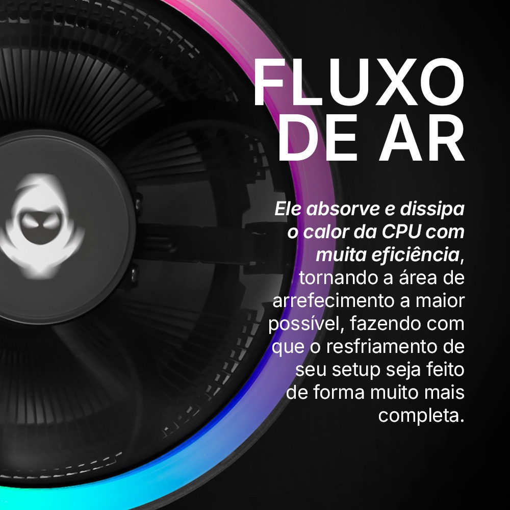 Cooler Para Processador Mancer Vortex Rainbow RGB A nova solução de arrefecimento do seu CPU está bem aqui: Mancer Vortex. Sistema de contato direto, iluminação em RGB, alta performance em dissipação de calor e um design que vai trazer beleza e eficiência para o seu setup. Prepare-se para um espetáculo de refrigeração! DESIGN Sua aparência arrojada entrega um design iluminado garantindo um brilho uniforme, que traz não só beleza, como versatilidade para o estilo do seu setup. A iluminação RGB do Mancer Vortex harmoniza com as mais diferentes configurações além de deixar a configuração do seu gabinete muito mais visível. VELOCIDADE DA VENTOINHA O Mancer Vortex foi projetado em forma circular, contando com uma ventoinha de nove pás que contribuem na dissipação do calor de forma efetiva, compacta e elegante. Tudo isso acontece em uma operação silenciosa graças ao seu rolamento hidráulico que gera muito mais eficiência com o mínimo de ruído. FLUXO DE AR Ele absorve e dissipa o calor da CPU com muita eficiência. Isso se dá graças a sua placa de alumínio de dissipação de calor, que tornam a área de arrefecimento a maior possível, fazendo com que o resfriamento de seu setup seja feito de forma muito mais completa. Marca: Pichau Modelo: MCR-VOR-01 Soquete: - INTEL: LGA115X/1700/1366 - AMD: FM1/FM2/754/939/940/AM2/AM2+/AM3/AM4/AM5 Material da Base: Liga de Alumínio Classificação de Voltagem: DC 12V Voltagem de Partida: < 6 V Tipo de Rolamento: Hidráulico Fluxo de Ar: 35 CFM Pressão de Ar: 1.0mmH2O (máximo) Velocidade: 1800 ± 10% RPM Nível de Ruído: 28dB (máximo) Conector: Conector de 3 pinos (12 LEDs Rainbow) Dimensão da Ventoinha: 120 x 120 x 25 mm Vida Útil: 30000 horas TDP: <105W *Garantia de 12 meses. PICHAU INFORMÁTICA LOJA OFICIAL A Pichau Informática, com mais de 18 anos de experiência, é um dos principais nomes no mercado nacional de tecnologia. Comprometida com a qualidade, eficiência e satisfação do cliente, busca constantemente melhorias para oferecer serviços e produtos de excelência.