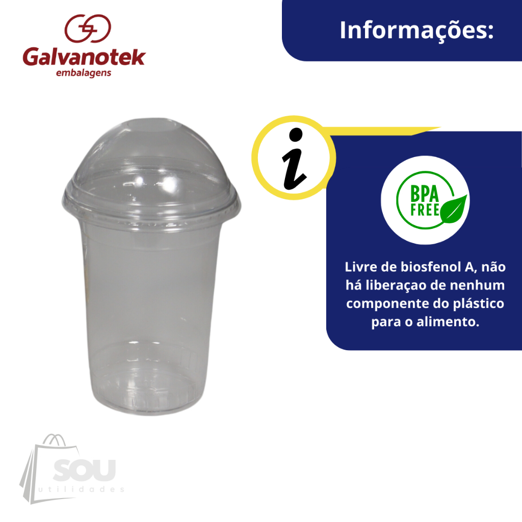 Copo 300 ml 500 ml com Tampa Bolha Sem Furo G830 e G850 Pote Galvanotek Copo da Felicidade