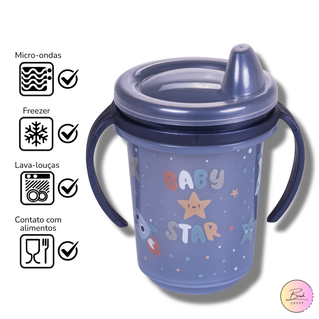 Copo Caneca com alça Infantil de Treinamento alça removível 330ml plasútil bebê antivazamento