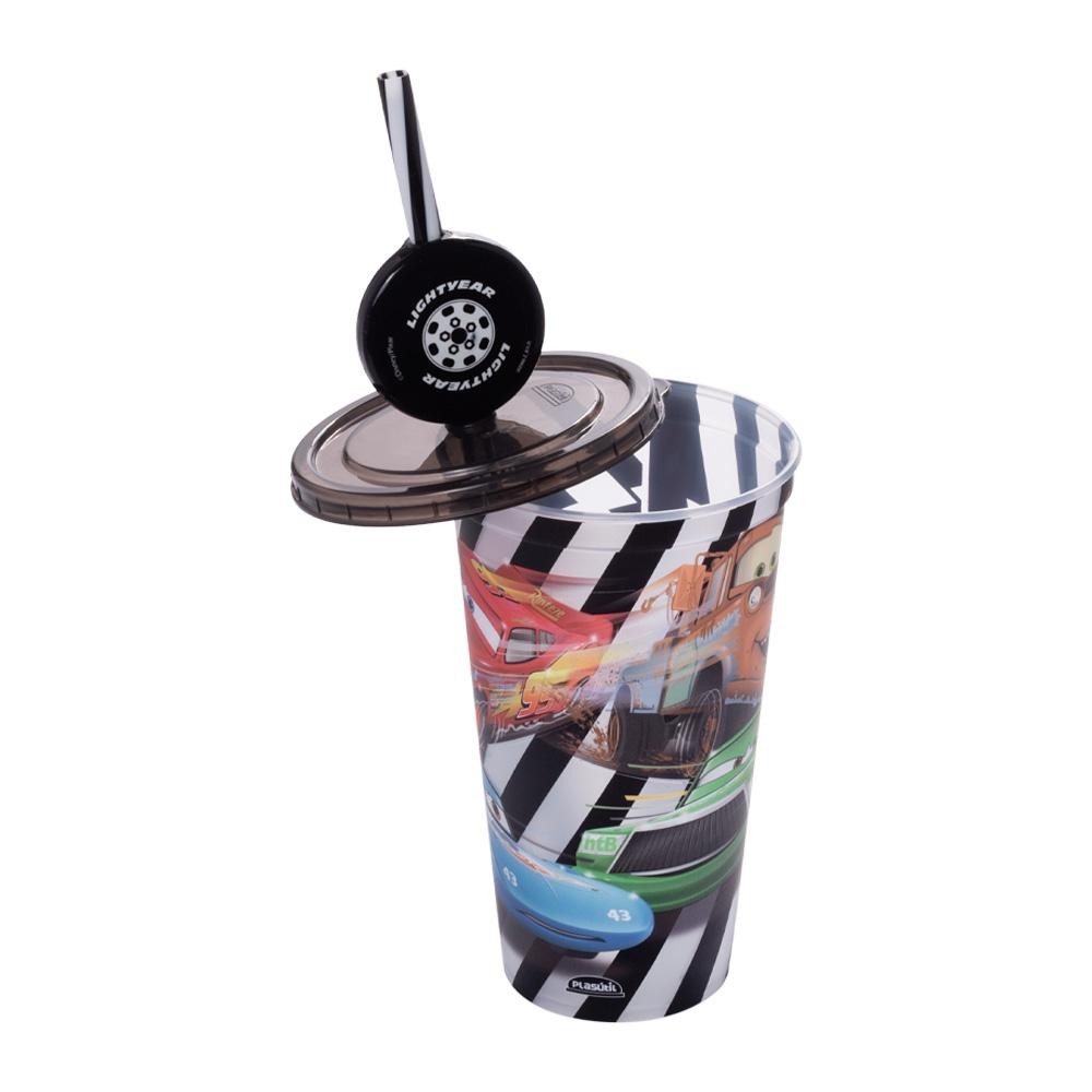 Copo Carros Canudo Pin Disney Plástico 500 Ml Plasútil