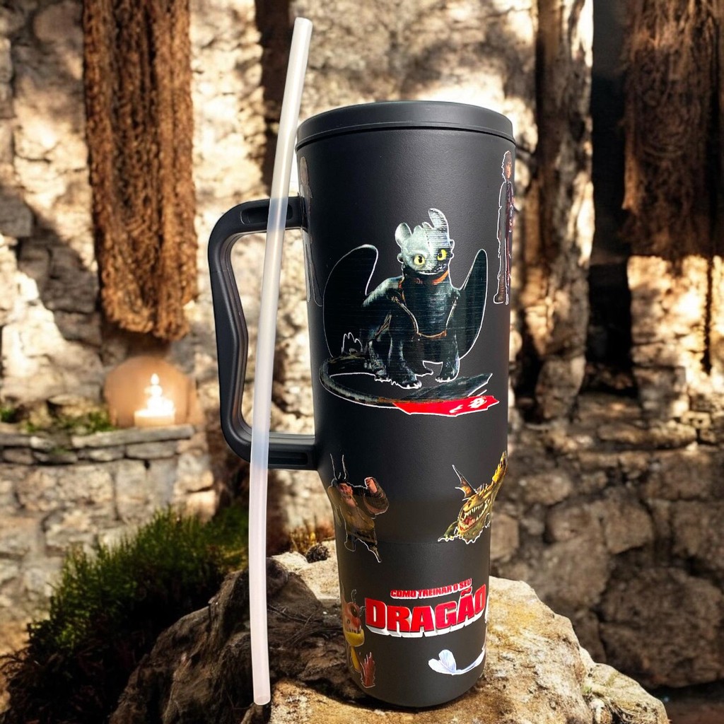 Copo com Canudo Como Treinar o Seu Dragão Personalizado 1200ml Em Policarbonato + B r i n d e