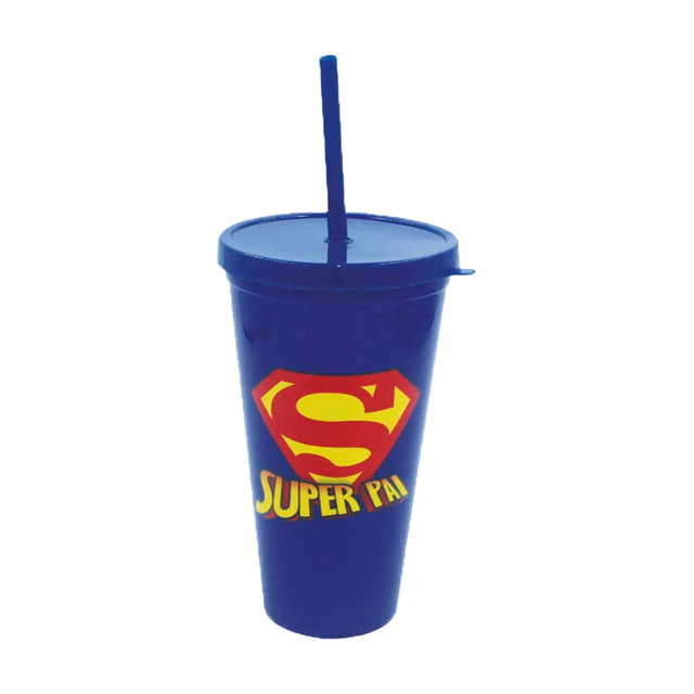 Copo com Tampa e Canudo - Super Pai - 600ml - 1 unidade - Rizzo