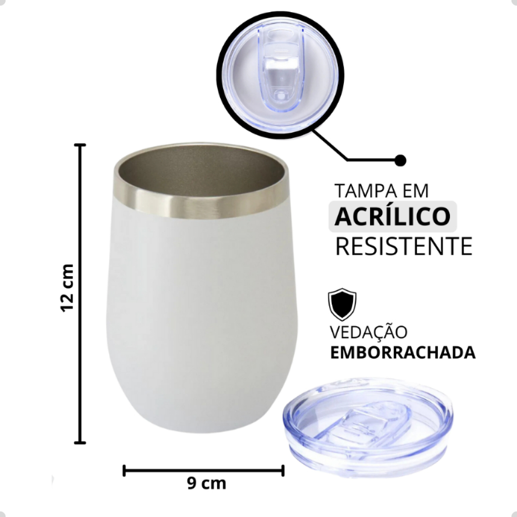 Copo Cuia Térmico 350ml Inox com Tampa Redondo Parede Dupla Ideal para Café Cerveja Chá