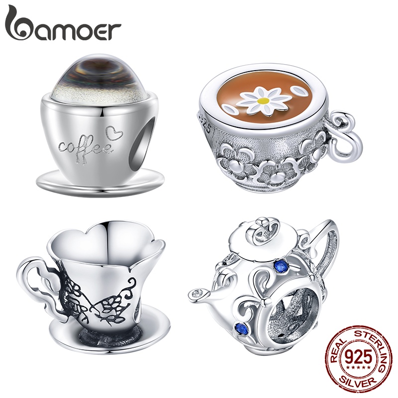 Copo De Café De Prata Bamoer 925 E Pingente De Vidro De Chá Para Fabricação De Pulseira SCC2475